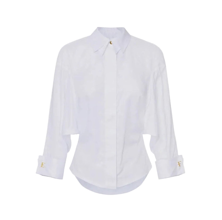 gold logo cufflinks on the cuffs